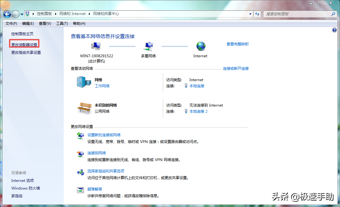 ②然后在弹出的【查看基本网络信息并设置连接】窗口界面的左侧,找到【更改适配器设置】选项,并点击打开。