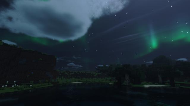 性能稍好的小伙伴就可以考虑这款光影了,这款光影的表现效果十分的强力,甚至不需要额外加材质包,就可以让整个游戏的美感上升好几个档次。在这款光影包中,方块云变成了体积云,并且添加了云层贴图,夜晚则是绿色的极光,水面也是像热带海洋一般的青蓝色,整体体验十分棒。虽然会对游戏帧率有一点点影响,但是正常游玩是没有问题的。