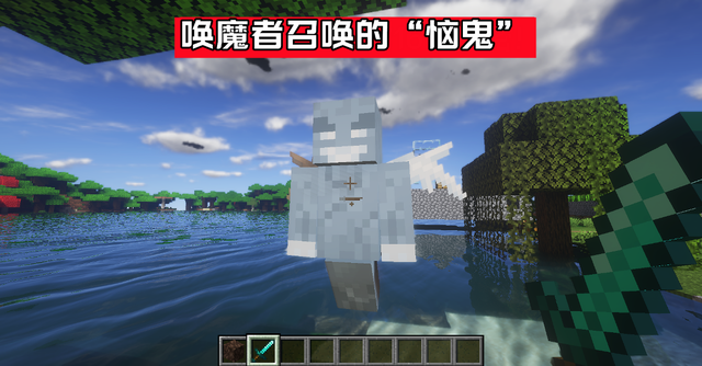 11、恼鬼攻击,唤魔者一次可召唤3只恼鬼,JAVA与基岩不同的地方在于,JAVA可以恼鬼和尖牙同时存在,而基岩在恼鬼存在期间无法召唤尖牙。