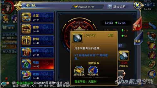 另一方面,装备升阶需要【皮料】及【原石】。材料的获取途径可以通过点击材料图标看到。进行第一次进阶的时候,玩家需要收集一级皮料和一级原石,这些材料就在皇陵密室、封魔帖、野外打怪、钱庄当中能够大量的产出。