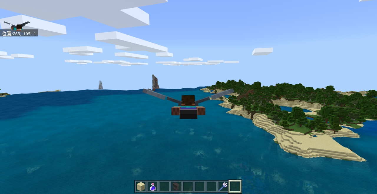 自从海洋版本更新后,我的世界中又新增了一种可以飞行的工具,那就是三叉戟。想要通过三叉戟来进行飞行,需要先对三叉戟进行附魔,如果附到激流就爽歪歪了。用三叉戟穿梭出去,从后面看起来是螺旋前进的,十分炫酷。