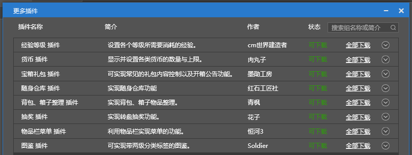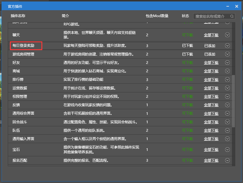 (2)打开后找到【每日登陆奖励】这一插件,点击【全部下载】(如图所示即为下载成功)。