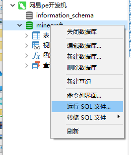 (4)接着我们打开Navicat连接到开发机,找到数据库minecraft并右键,点击【运行SQL文件】。
