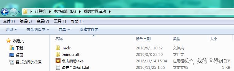 2、下载精简版,解压到特定目录,例如D:我的世界启动