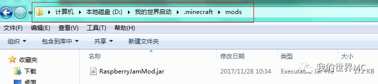 2、将压缩文件modes.zip解压,打开和前面下载的我的世界版本一致的文件夹如1.12.2,将里面的文件RaspberryJamMod.jar拷贝到我的世界安装目录下的mods文件夹中,例如