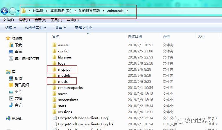3、将下载的mcpipy文件夹放到我的世界启动侠目录下的.minecraft目录里