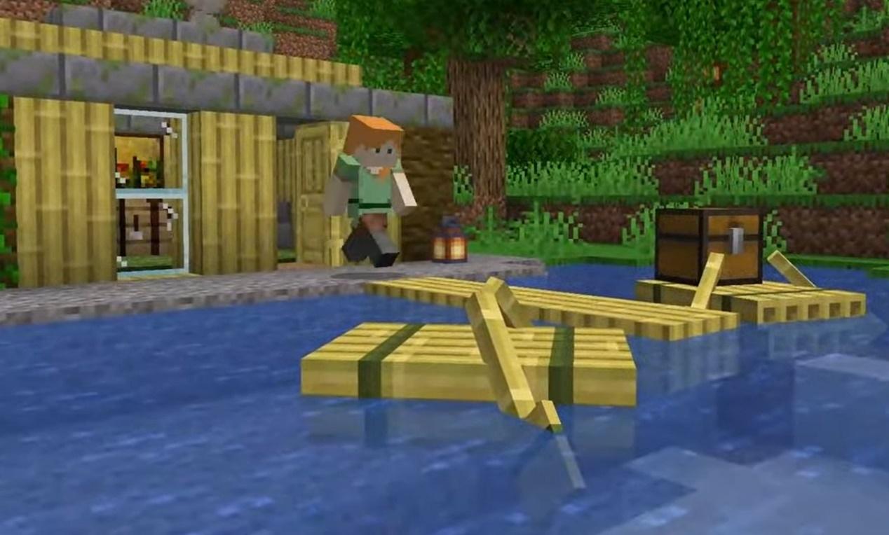 用竹子做成的船,不仅仅是材质上的变化了,整个船的模型都被改变了。起初我以为这会像英文描述的那样这是一个竹筏。然而《我的世界》加入的不过是个假“竹筏”罢了。除了外形之外没有任何竹筏的特征,竹筏的一切特性与船无异!所以倒不如说这是一个竹子做成的船。