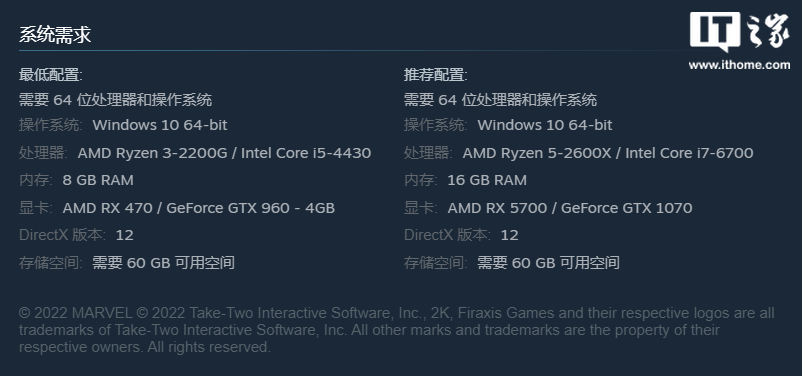IT之家了解到,游戏推荐配置要求 RX 5700 或 GTX 1070 及以上显卡,存储空间需要 60GB。