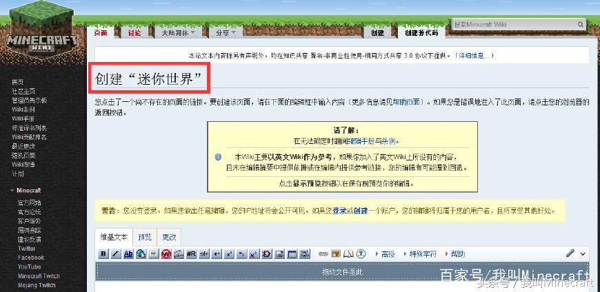 10、《我的世界》Wiki上也有你搜不到的内容,比方说《迷你世界》就搜不到,但是可以创建这个条目,让全球Minecraft玩家知道什么是迷你世界吧。MC玩家:自己家的事情,咱关起门自己解决,丢脸丢到国外就不好了!