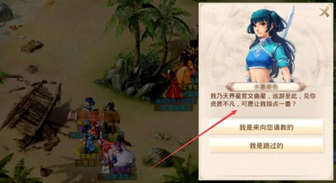 2,选择向文曲星请教的选项后可以在指定地图碰到随机出现的文曲星,前去向文曲星请教,就可以开始答题闯关啦。
