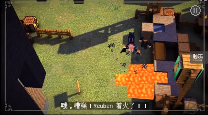 不仅如此,MC故事模式在对细节上的还原也相当到位。建筑大赛上,不甘心失败的NPC会打碎方块,放出岩浆,意欲毁坏主角一行所建造的机器。放在别的故事,放岩浆这一行为不能说不怪异,几乎没法实现,但在MC故事模式里,岩浆按照玩家熟悉的节奏缓缓扩散,碰到主角的宠物小猪,猪发出熟悉的惨叫声,身上燃起火,这所有的一切与MC世界的规则完全相符、无比自然,放在别的游戏里就不能演绎。