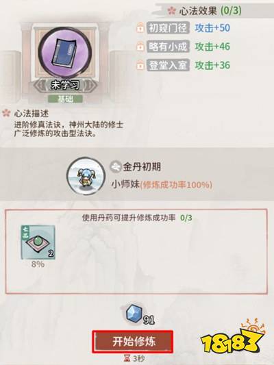 4、下面就可以自创心法了,需要注意自创心法的失败率是很高的。