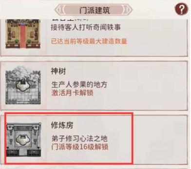 1、首先玩家需要建造一个【修炼房】,玩家需要达到16级才可以建造;