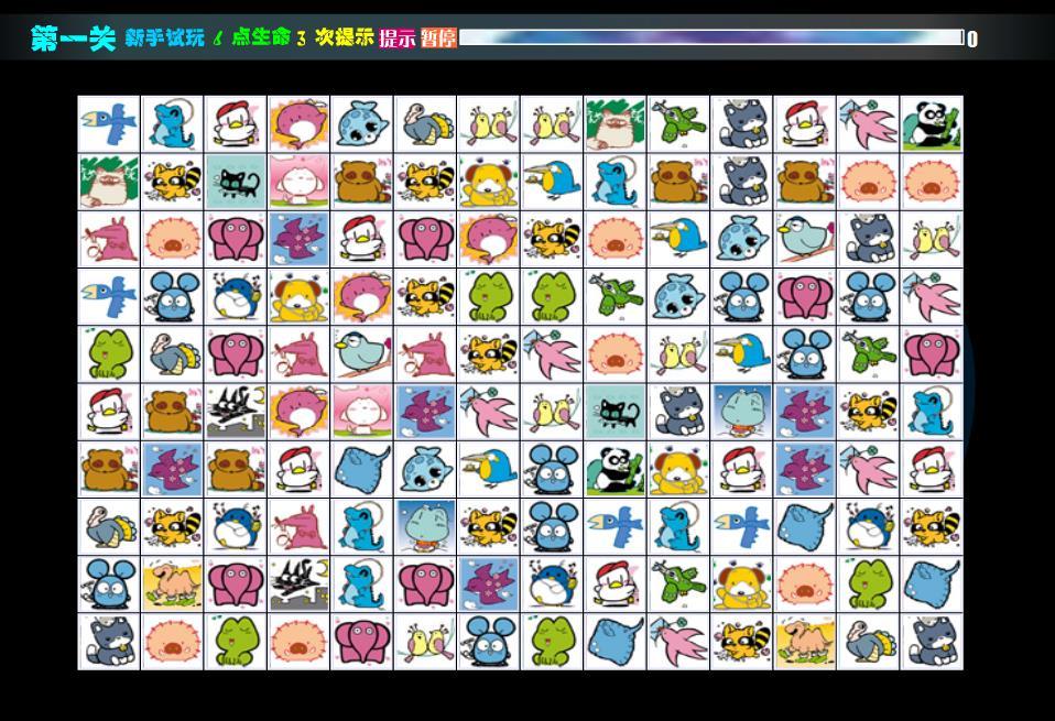 这款宠物连连看的难度算是同类游戏里较高的了,上面的横条是倒数计时,在横条走完之前要解完这关,每连上一对会增加一点时间,如果实在找不到能连的图案,还可以点击上方的【提示】,但由于图案数量过多,非常考验眼力,并且每过一关难度都会增加,所以想要通关并不容易,能玩到最后的人,不是真的强,就是真的闲。