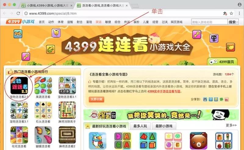 然后点击左侧排行第一的“宠物连连看2.5”。