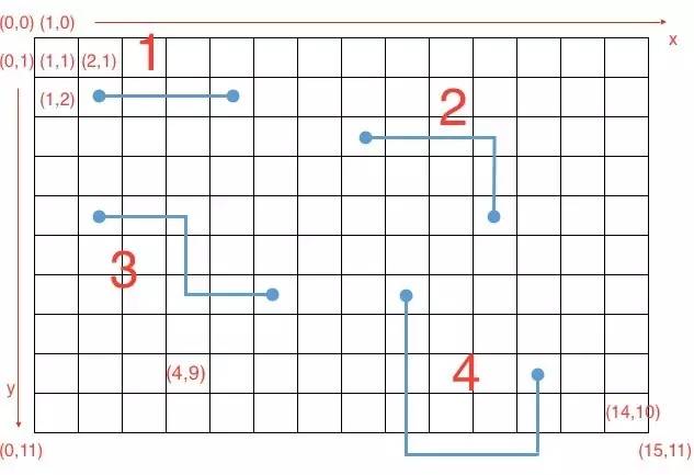 同时为了计算方便,格子之外也占用一个坐标位置。