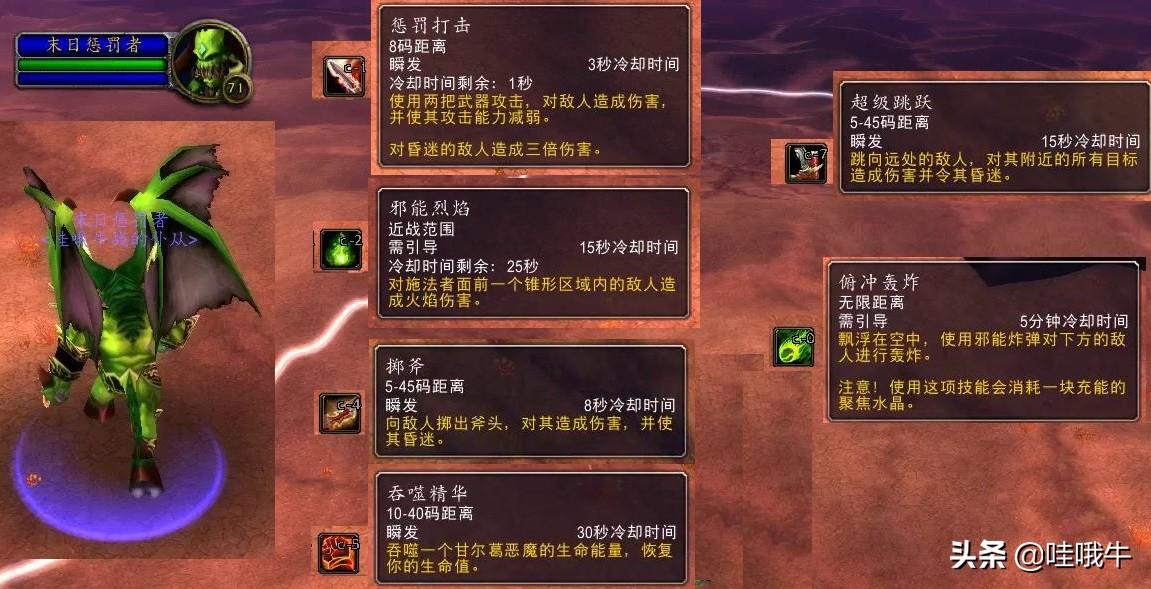 ③面对新恶魔【末日惩罚者】时,只要看它释放“邪能烈焰”,立刻“恐惧咆哮”+“混乱冲锋”,两个技能都是15秒CD;