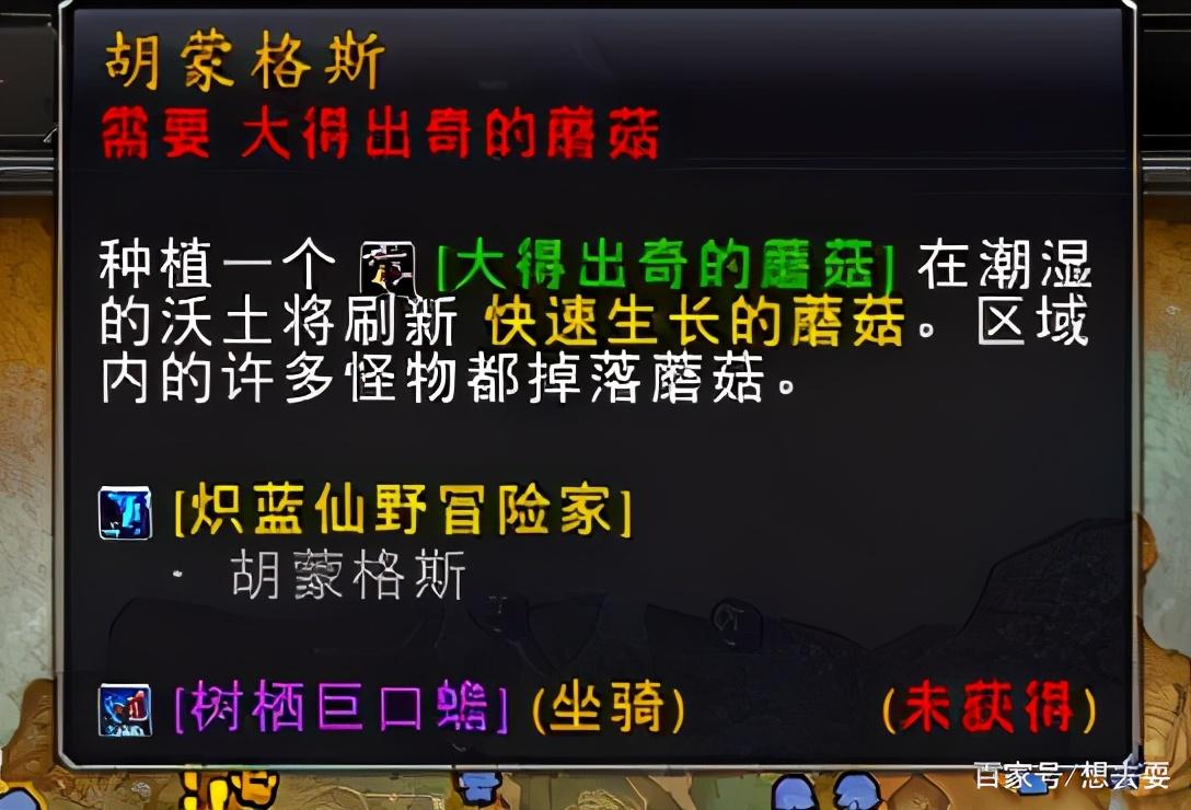 长得像蛤蟆一样的坐骑,圆圆滚滚也挺好看的。需要玩家在炽蓝仙野击杀野怪掉落“大得出奇的蘑菇”,然后到地图左上角的种植,最后把出现的精英杀掉就可以了,蘑菇的掉率比较低,大家可以做世界任务的时候多击杀些野怪。