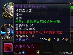与符文牡鹿一样,同样是需要法夜盟约的。这个只需要我们在名望军需官处花费5000心能于75个感激之礼就能获得,简单快捷。