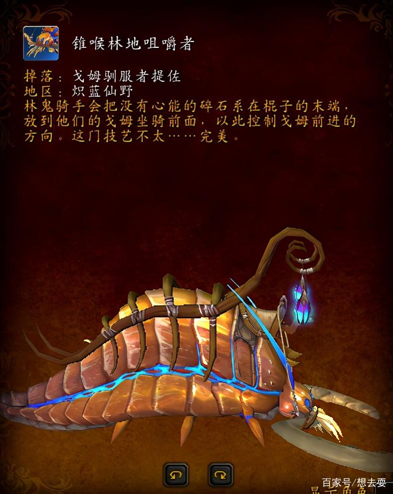 这个还是在地图左下角塞兹仙林里面,我们首先得找到蓟果怪击杀,在坐标(30,55)周围,后面他会召唤一只叫阿吞的虫子,把虫子击杀后杀死提佐就可以获得该坐骑了。怪物血量很多,可以呼朋唤友一起去。