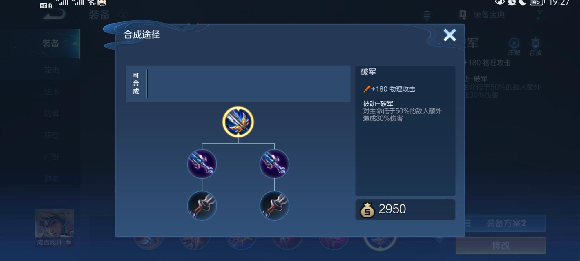 又是一把贵的离谱的装备,但是出完感觉成吉思汗瞬间就是秒杀大师。破军提供的180物理攻击是王者峡谷商店中所有武器里面最多的,可以有效提高暴击伤害,另外,对于半血以下的敌人,破军可以造成额外30%伤害,相当于只要被成吉思汗抓到残血的,那么基本是必死了。