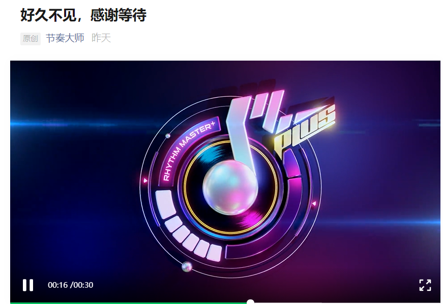 昨日,“节奏大师”官微突然发文,表示:“好久不见,感谢等待”,并配了一段宣传视频,新名称疑似为《节奏大师 plus》。
