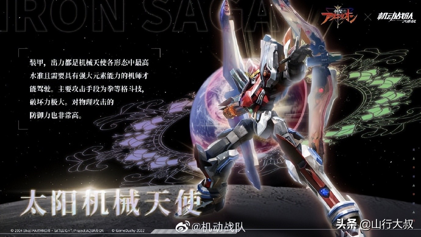 一句go!AQUARION!,一句阿姨洗铁路,承载了多少人的会议,创圣的大天使讲述了具有奇特能力的类人型生命体——堕天使,与人类共存与同一星球。堕天使依靠强大、神秘的能力奴役人类,以人类的生命能量为食。拥有足够强大的力量,可以随意主宰人类的生死。但是这一平衡在某一件事后被打破,大天使阿波罗尼亚斯与身为人类的赛丽安坠入爱河,在堕天使与人类的战斗中脱离出堕天使的阵营,加入人类一方与堕天使战斗的故事,在与机动战队联动当中阿波罗等人依然保持这那份热血,而太阳机械天使也在游戏中登陆,强大的输出和离子方特效收到了很多玩家的好评!