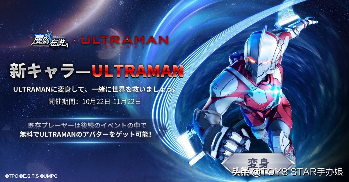 这次是与该游戏的日服联动,玩家们变身成机动奥特曼,成为魔剑界的传奇!