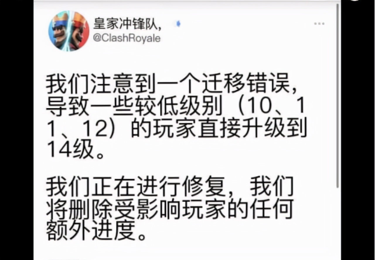 为此,大家也是积极地向CR官方反馈了这个BUG,而官方的回复也非常简单,只是描述了自己注意到了这个BUG,然后对此正在进行修复,之后就会删掉这些影响玩家的额外进度。而游戏也确实在大更新后,又进行了一次临时维护,目的应该就是为了解决这个BUG。