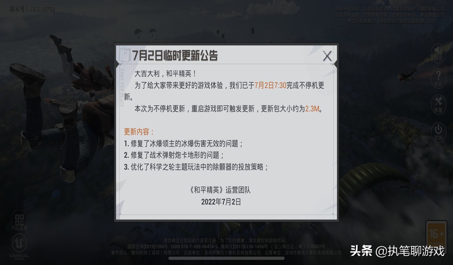 欢迎诸位小伙伴们来到天哥开讲的《和平精英》“精英小课堂”~在这款游戏里,流传着“用心做皮肤,用脚做游戏”的说法,即便是新版本在体验服已经测试多天,但是在正式服更新之后,总会出现一些优化、修复的小更新。