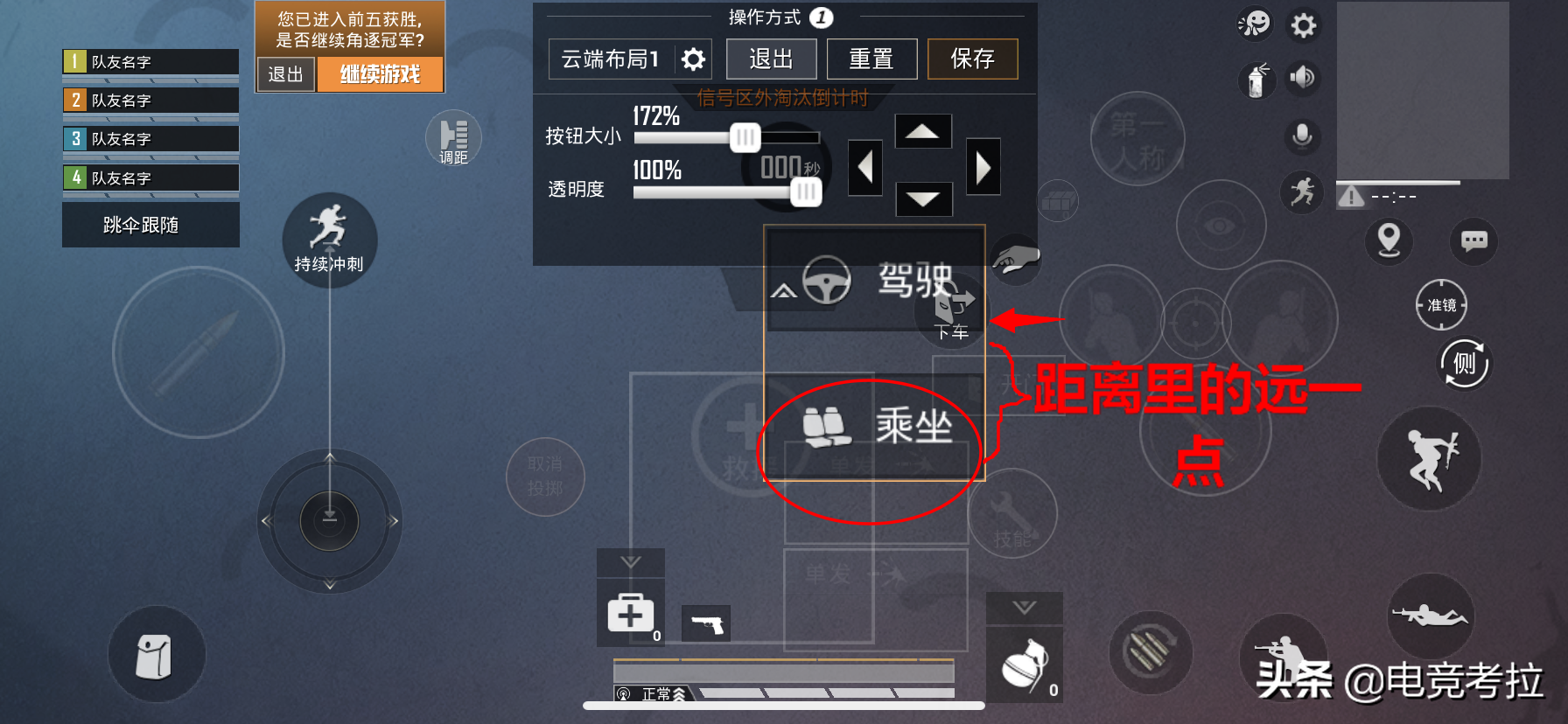 大家可别小瞧这个按键的位置设定,我曾经“有幸”因为这个键位设置的不当,导致出现被自己的雷炸死的情况,当初设置的位置靠屏幕右上方,左手扔雷还好,因为不需要移动,取消时直接右手点就行,但是在右手扔雷想要取消的时候,左手离取消键太远,移动的时候很难按到,通常我们扔的都是瞬爆雷,如果没有及时取消,直接自雷,所以从那以后“取消投掷”的键位就被我放到左手边了。