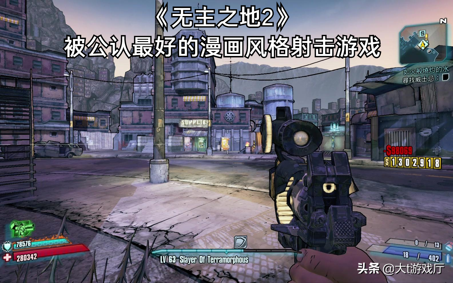 无主之地2是最棒的漫画风格,第一人称开放性世界射击游戏,它的经典程度和耐玩性是最棒的,这一点是不可否认的。游戏玩起来很轻松,很自在,武器的操作手感和打击感都很强,剧情方面有点脑洞大开,还有一些幽默搞笑的元素。