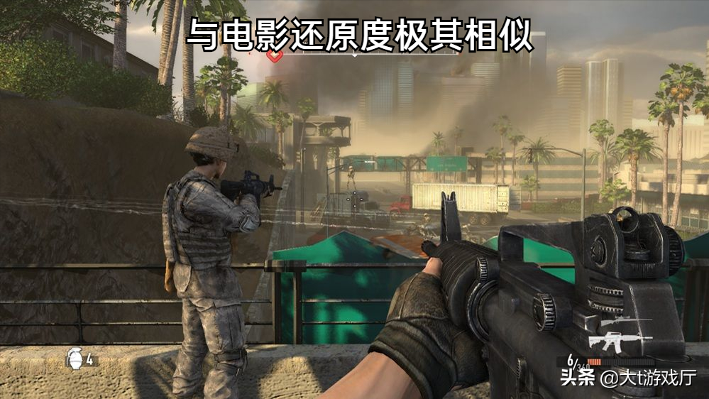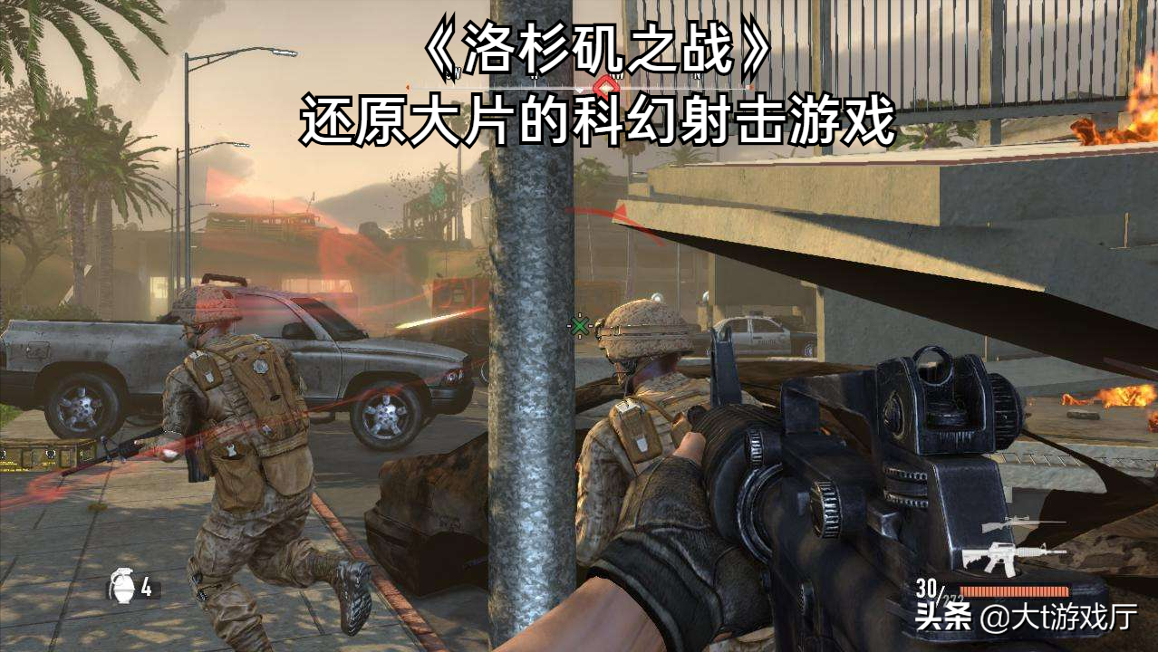在进行游戏时,玩家也不会孤独,因为身边会跟随一个手拿冲锋枪的助手,近距离时他会为你提供火力支援,在远处时,他会为你侦察目标,报告情况。这款游戏解压完毕后仅有500MB,但能在里面体验的内容是相当的丰富,在当年它的画面也是数一数二。第5款:洛杉矶之战