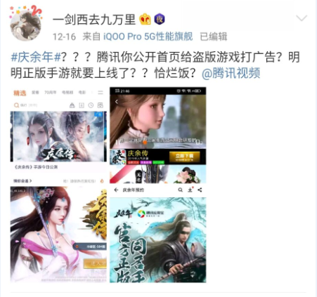 众说周知,腾讯前几年在各种盗版游戏上获得了巨大的利润,当年各种一列以QQ开头的游戏支配着那一个时代的游戏厂商。包括现在,腾讯甚至还给盗版游戏打广告。