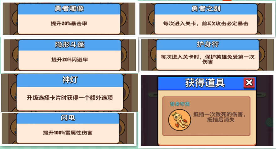 当然,一个游戏好玩不能只是靠人物设计得好。在关卡中,除了类似弓箭传说中间的回血天使房间,进击冒险书还加入了许多新的东西。
