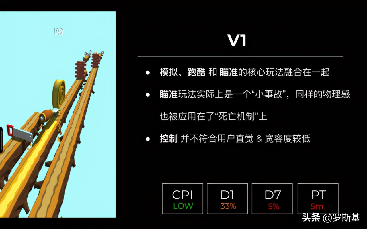我们在测试第一个版本时发现CPI很低,但次留、七留和游戏时长并不理想,主要原因是这个版本的控制比较复杂,需要左右移动和点击放开,这并不符合用户的直觉,同时游戏宽容度较低。我们看到大多数超休闲游戏的操作是非常简化的——用户只需要做一个选择。