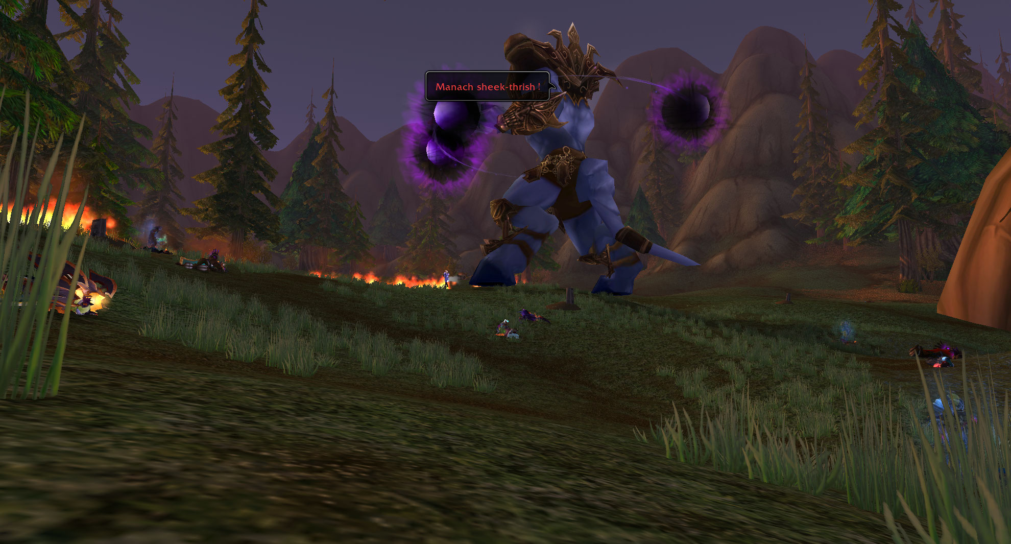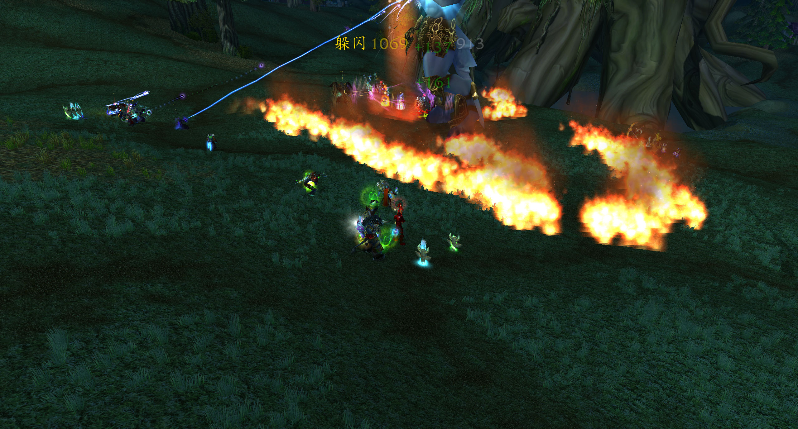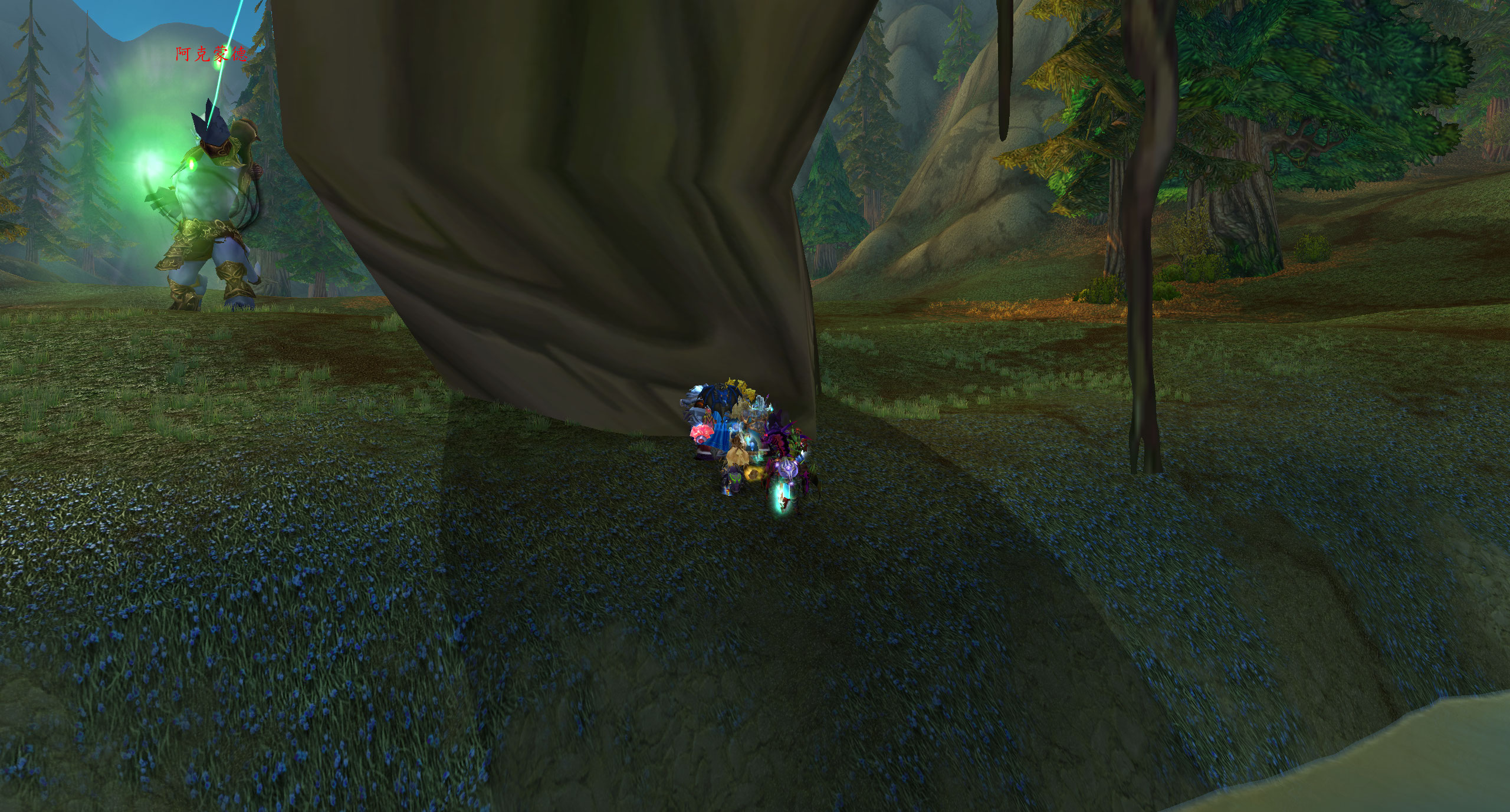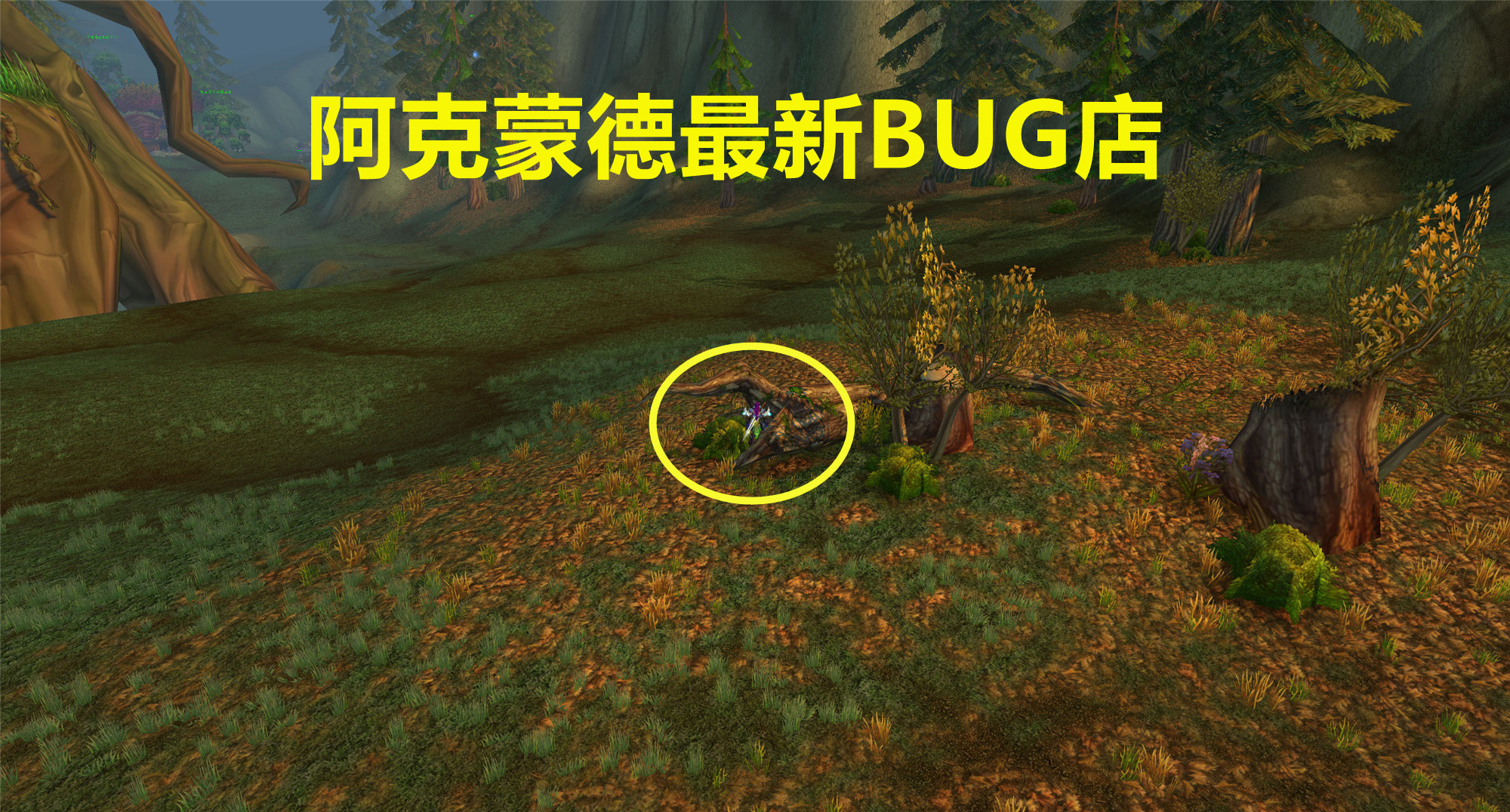 大家看下面的图片,这里就是最新的BUG点,大部分种族都可以卡进去,如果是牛头人可以吃美味风蛇。这个地方是完全可以防止被击飞,但是地上的火焰不是百分百能躲避,有很小的几率火会烧到大团,这一点主要是看脸。许多团队使用这个BUG点都没有被火烧到,都是非常顺利一遍就击杀了阿克蒙德,由此可见火焰进大团的概率很低。