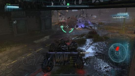 这时发现一辆疑似阿甘骑士的装甲车正准备逃窜,一路追击它,并且以驾驶模式的追踪飞弹摧毁其他越野车以及这辆装甲车。