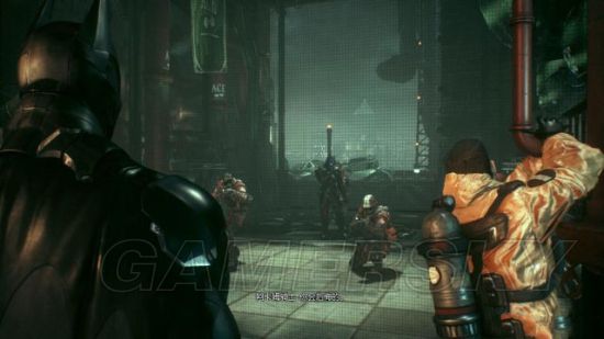 这里是蝙蝠侠研究小丑病毒的基地,与四名携带小丑病毒的囚禁者对话,接下来蝙蝠侠就会出现。