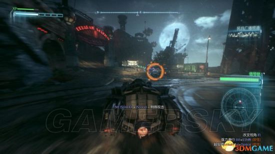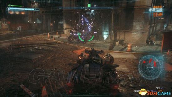 step1.进入到蝙蝠车内,开启战斗模式,然后按X键启动取证器,以追踪芭芭拉所在越野车的轮胎痕迹。