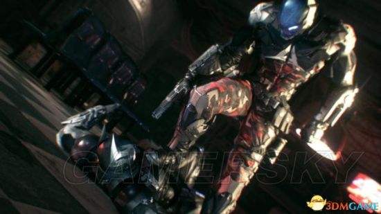 step7.阿甘骑士早已察觉到蝙蝠侠的动静,他在这里伏击蝙蝠侠,而且他还清楚蝙蝠侠装甲的弱点朝蝙蝠侠的左腹开了一枪,蝙蝠侠为了能够活动自如就打了一针止痛剂。