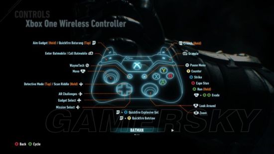 XBOXONE版标准键位(蝙蝠车驾驶)