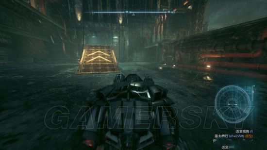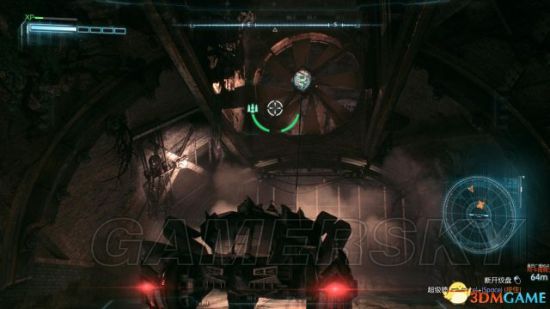 step2.阿尔弗雷德打开第一道防爆门后,发现第二道门系统被人篡改无法开启,稍微倒车至隧道初段中间,可以发现天花板的扇叶可以用蝙蝠车绞盘拉扯摧毁。