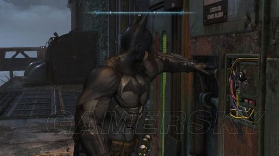 step3.继续追踪轮胎痕迹直到通往麦甘尼的大桥前,阿尔弗雷德无法将慈悲桥降下来,他为蝙蝠侠找到了雇佣兵控制交通控制系统的接入点。