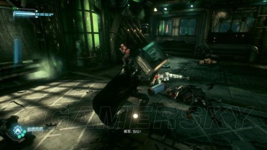 step5.内进到孤儿院内解救出猫女,可是猫女表示自己项上带有炸弹的线圈,谜语人要求蝙蝠侠和猫女一同击退绿色的机械人,按E键可以切换角色进行战斗。