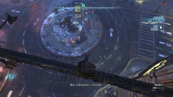 控制蝙蝠侠以滑翔前往该处,按空格键可以滑翔,如果滑翔力不足,可以在滑翔过程中按Ctrl键稍作俯冲换取更大的动能继续翱翔。