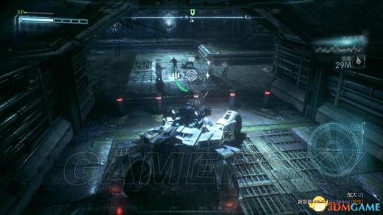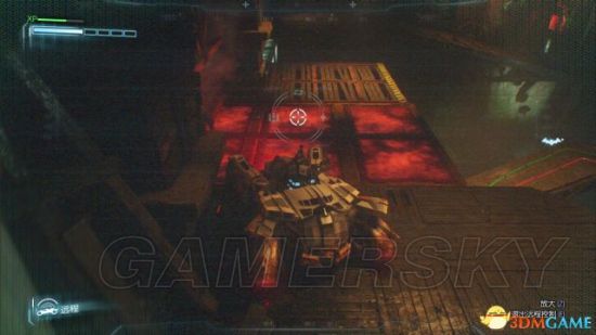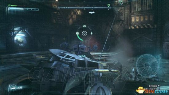 先让蝙蝠车从1号闸口进行绳降(进入战斗模式用绞盘拴住天花的吊环),接着降到二层,并侧向行驶令到蝙蝠车落墙体标志上,那么对面必然会出现一个洞。