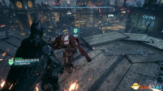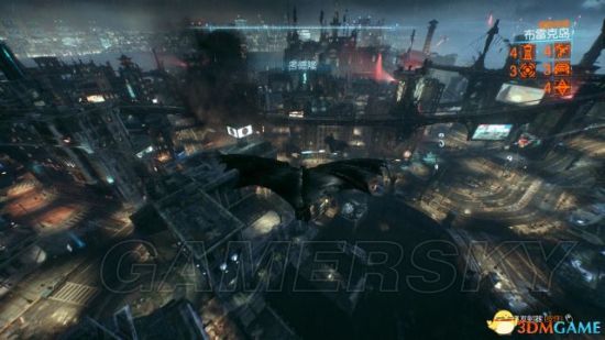 step3.接下要寻找萤火虫是没有任务追踪,但可以让蝙蝠侠飞到高处,寻找冒出浓烟的消防署就可以继续这个支线任务。