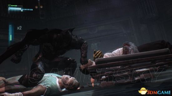 而对付猪面人就比较简单,当与其他病患战斗的时候,猪面人会向蝙蝠侠投掷飞刀,按鼠标右键就可以进行反击,然后对猪面人所在的手术桌发动环境攻击,就可以击退猪面人。
