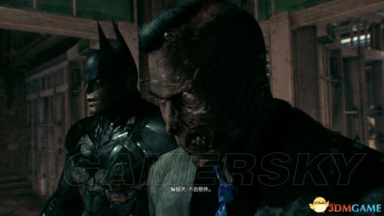 step2.这时候玩家才真正控制蝙蝠侠进入到办公室内,与挟持卢修斯的汤米对峙。